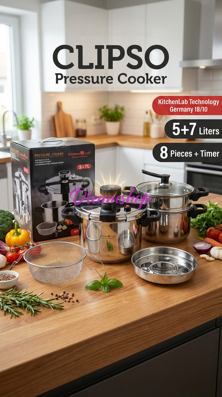 | Cocotte Minute CLIPSO KitchenLab Technologie Germany 18/10 5+7 Litres 8 Pièces + Timer | 1 17800 د.ج |