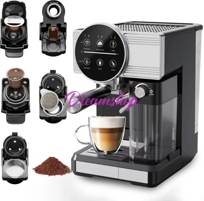 ماكينة تحضير 5 في 1 القهوة إسبريسو و الكابتشينو (كابسولات + دولتشي جوستو + قهوة مطحونة + دوسات +الكابتشينو )