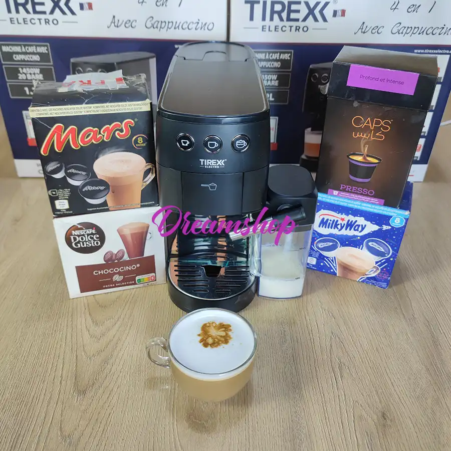 ماكينة تحضير TIREXX 4 في 1 القهوة إسبريسو و الكابتشينو (كابسولات+ قهوة مطحونة + دولتشي جوستو+الكابتشينو )